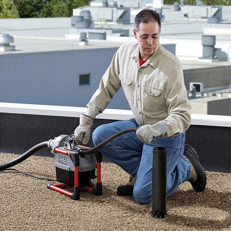 Udrożnienie i wyczyszczenie odcinka instalacji, łączącej toalete z głównym pionem. M3e4chaniczne udrożnienie instalacji kanalizacyjnej.
